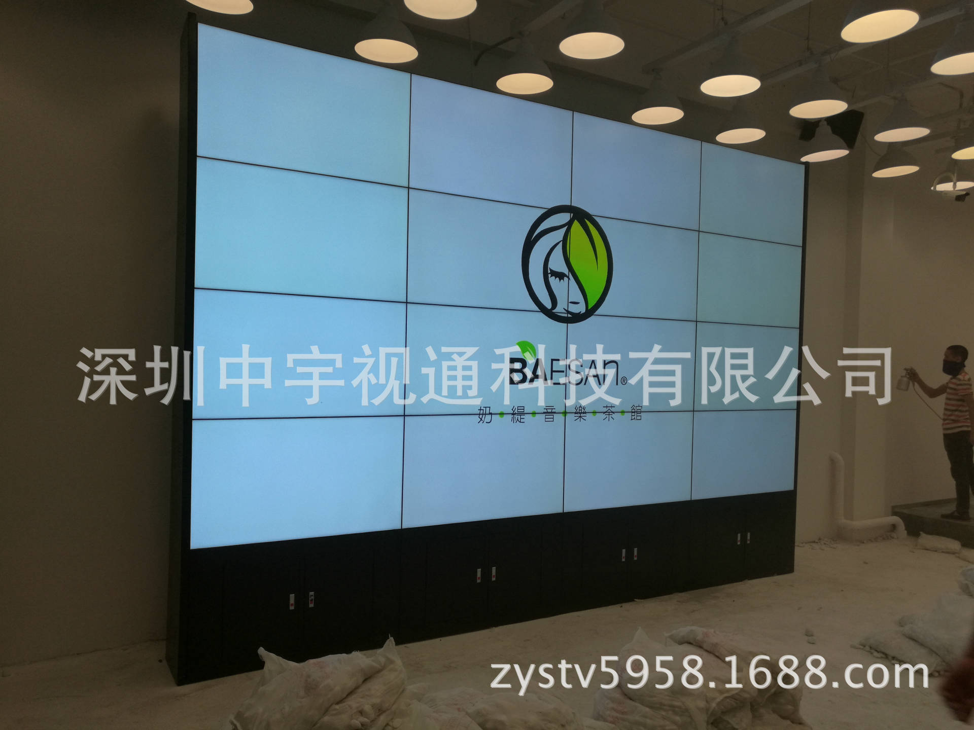 惠州華潤小徑灣海灘813芭依珊(奶緹茶館)窄邊55寸拼接屏項目