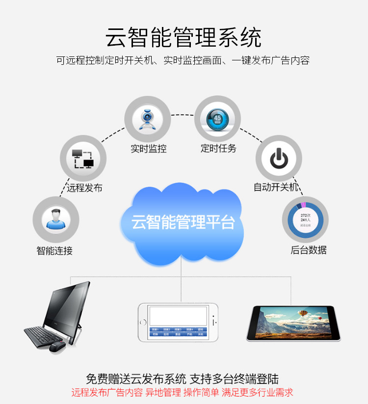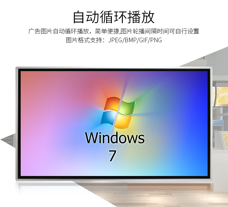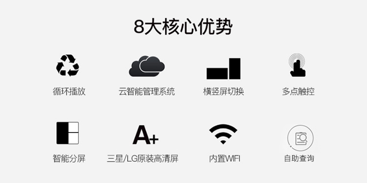 工業(yè)級電源系統(tǒng),自帶恒溫散熱系統(tǒng),可滿足24*7連續(xù)不間斷開機(jī)播放。